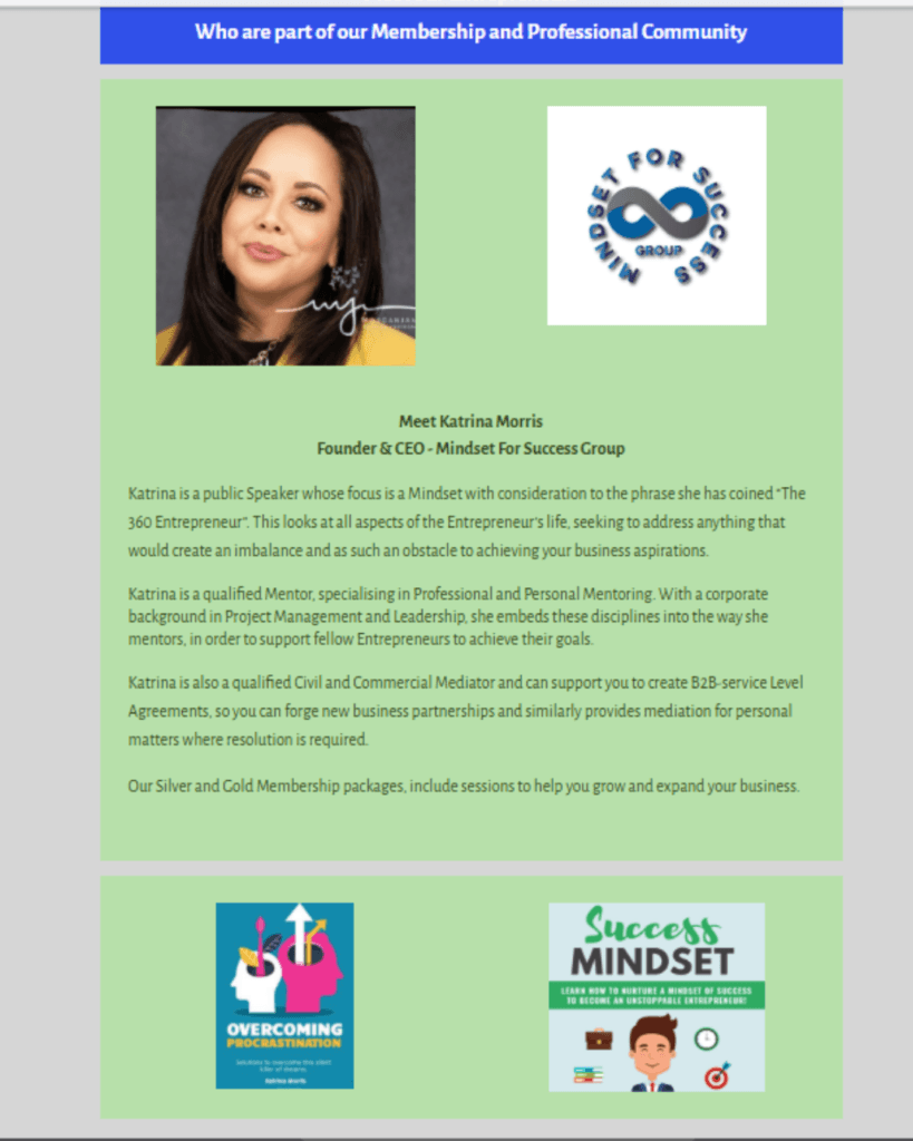 “At Mindset for Success Group, through our online Business Development Portal, we provide entrepreneurs and start up business owners with the tools, connections, and resources to scale and succeed through our proven GOD System – Growth, Opportunity and Development”
